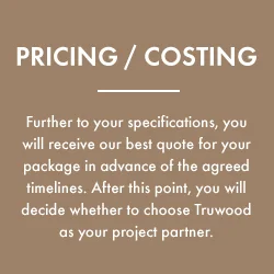 Further to your specifications, you will receive our best quote for your package in advance of the agreed timelines. After this point, you will decide whether to choose Truwood as your project partner.