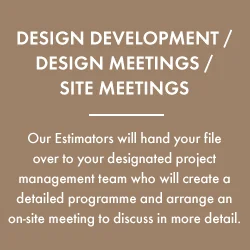 Our Estimators will hand your file over to your designated project management team who will create a detailed programme and arrange an on-site meeting to discuss in more detail.